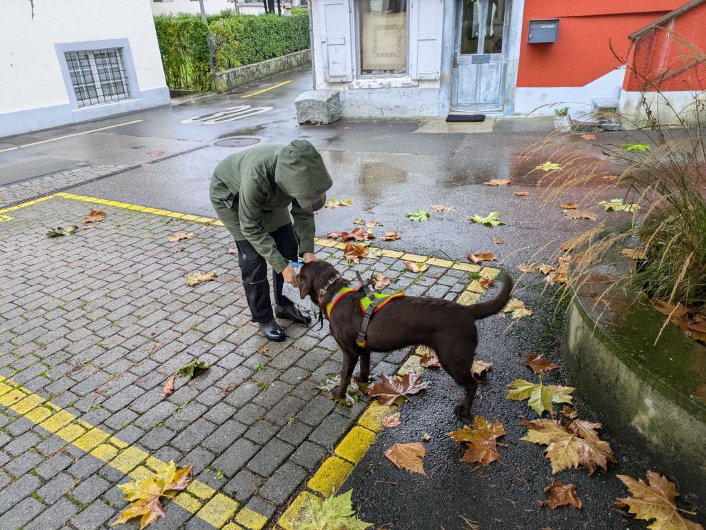 Bei bestem Wetter – zugegebenermassen gleich Nass von unten wie von oben – und die Welt in ein einheitliches Grau gehüllt begaben sich drei Retriver mit ihren Halterinnen und Halter am frühen Sonntagmorgen in urbaner Umgebung auf die Suche nach vermissten Hundebesitzern.