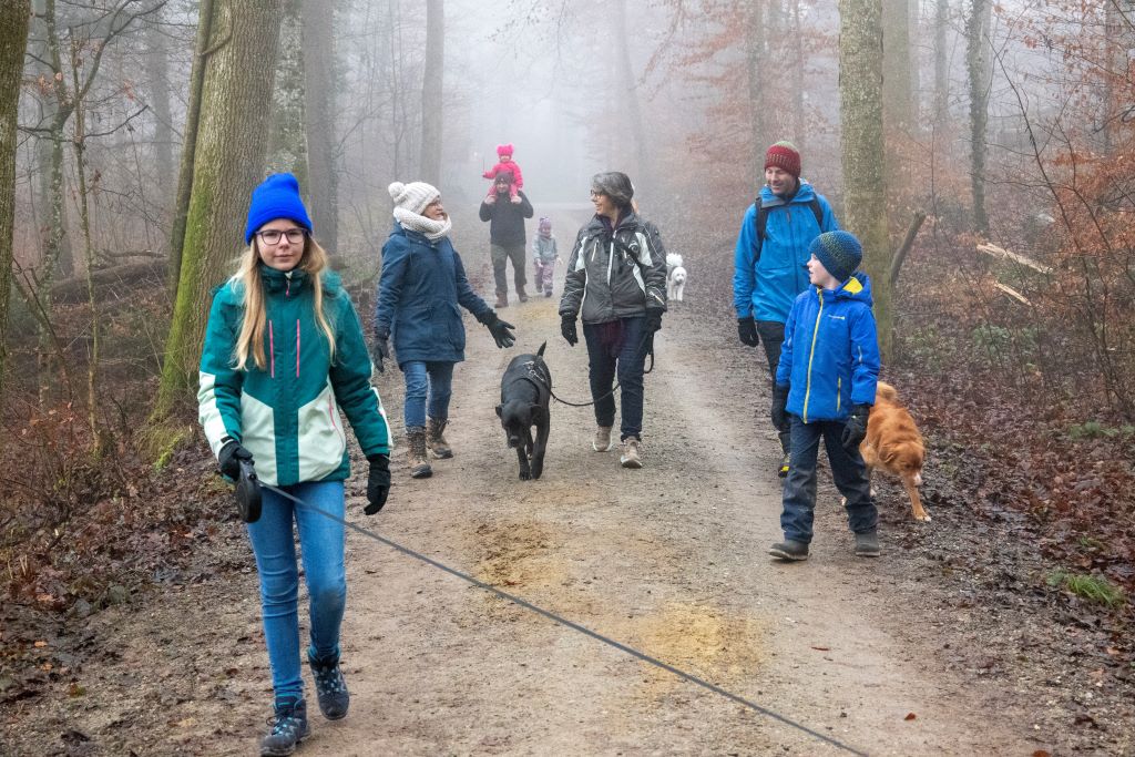 Nachdem wir uns alle versammelt hatten, machten wir uns gemeinsam auf den Weg in den tiefen Wald, um den Spuren des Samichlaus zu folgen.