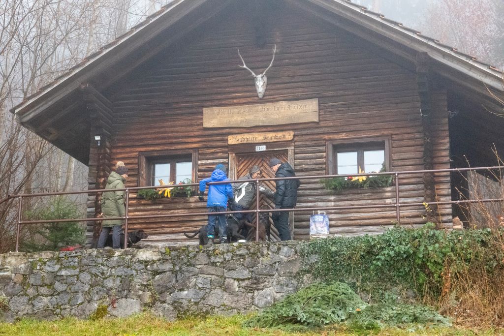 Nach einem etwa einstündigen Fussmarsch erreichten wir die urchige Jagdhütte Sennweid. Dort erwarteten uns ein gemütliches Feuer im Cheminée sowie liebevoll dekorierte Tische, reichlich bestückt mit Mandarinli, Nüssli und Schöggeli. Auch kulinarisch wurden alle fleissigen Chläuseler verwöhnt: Es gab eine sensationelle Kürbissuppe, feine Würste, Zopf und Brot sowie köstlichen Lebkuchen.
