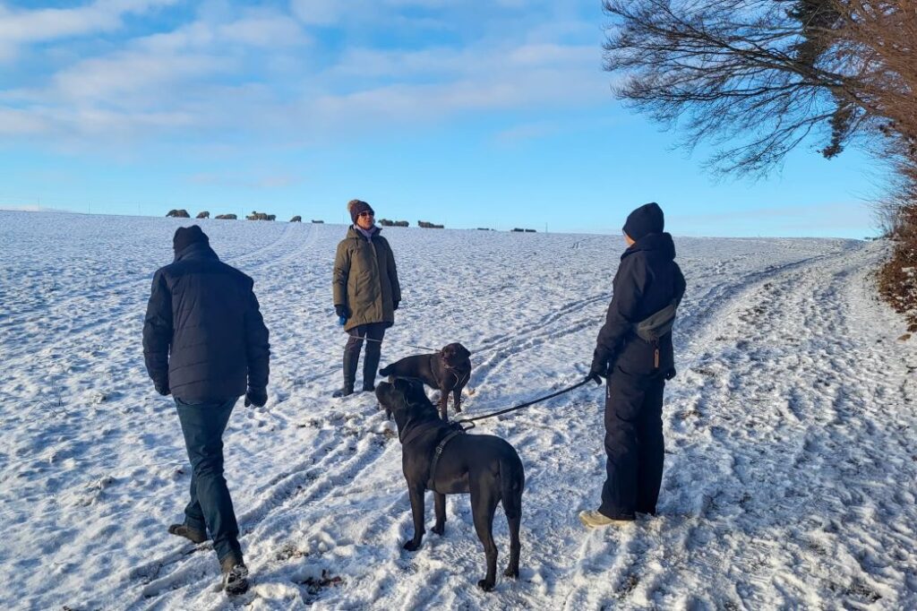 Der Nebel war vergessen, genauso wie die Kälte. In diesem Moment gab es nur den Schnee, das Licht und die Freude an der Bewegung. Als sie schliesslich erschöpft zu den Autos zurückkamen, die Schnauzen weiss gepudert, wussten Ambra, Ruby und Jaya: Dieser kleine Aufbruch hatte sich gelohnt. Manchmal braucht es nur ein paar mutige Schritte – und schon wird aus einem grauen Morgen ein perfekter Wintertag.